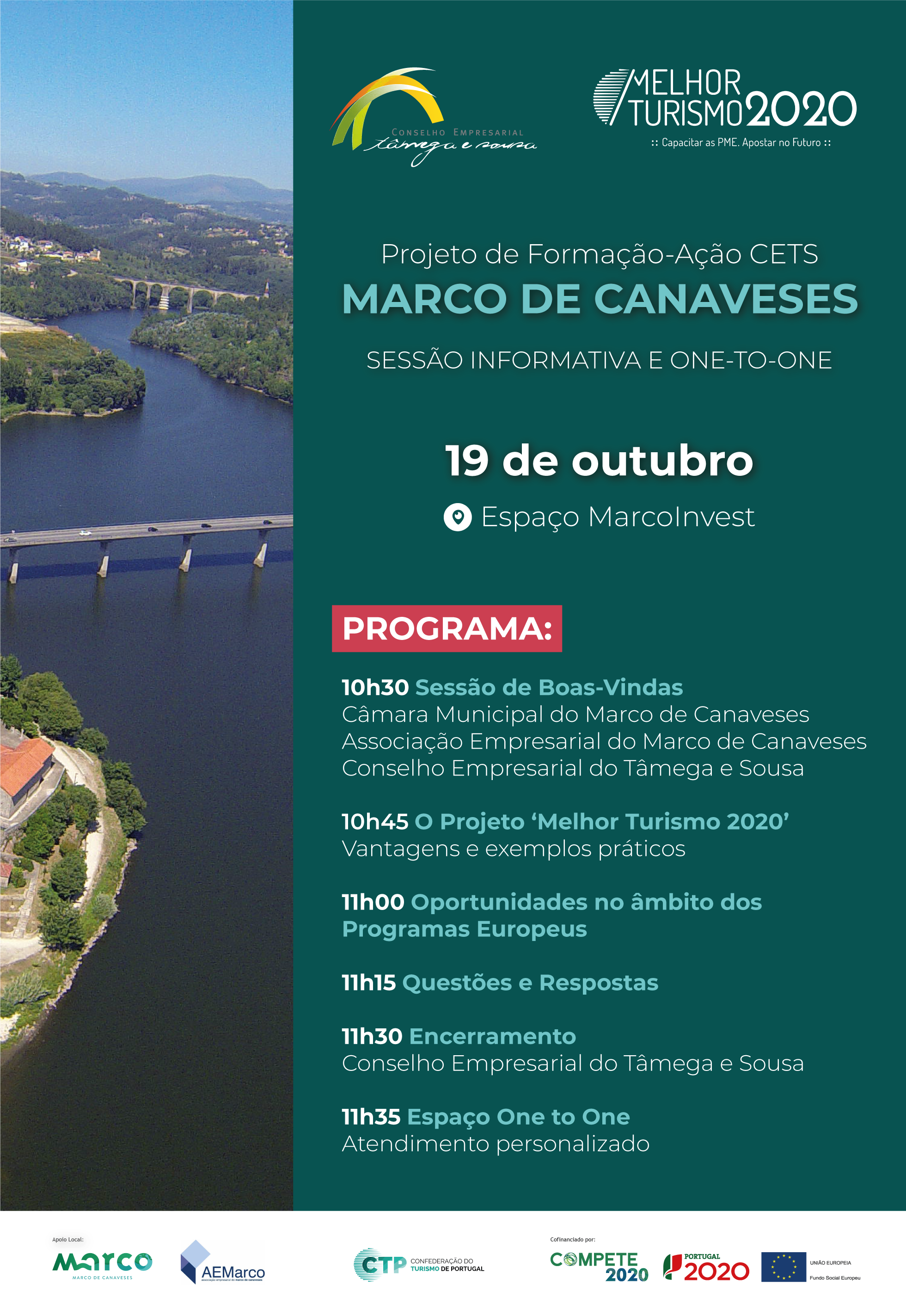 No próximo dia 19 de outubro, pelas 10h30, o MarcoInvest irá acolher uma sessão informativa sobre o Projeto CETS de Formação-Ação dedicada ao setor do Turismo, dinamizada pelo Conselho Empresarial do Tâmega e Sousa.